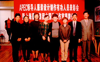 2001年上海APEC會議,當(dāng)與會各國首腦穿著的“新唐裝”亮相時,贏得一片喝彩。這批新唐裝就是上服集團研制的杰作。會后,設(shè)計師團隊受到國家領(lǐng)導(dǎo)人高度贊揚,上海市政府外事辦授予上服集團“特殊貢獻獎”,該項目之后還榮獲中國紡織工業(yè)協(xié)會科技進步二等獎、上海市技術(shù)發(fā)明三等獎。